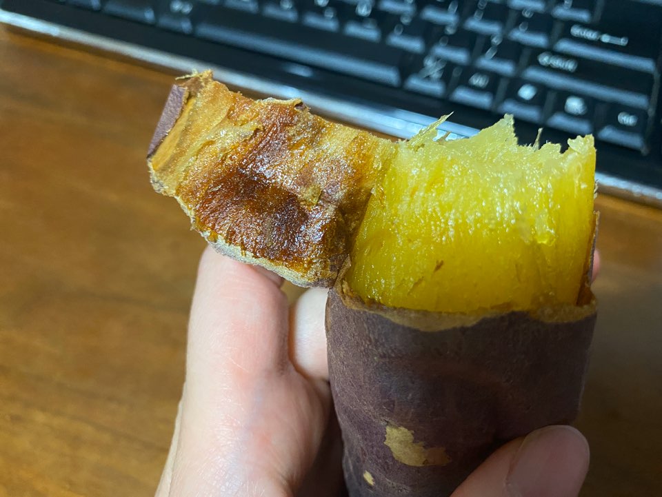 에어프라이어로 200도 20분씩 돌려서 살짝 군고구마처럼 태워서 먹었더니 저렇게 영롱한 비주얼이 나왔습니다.