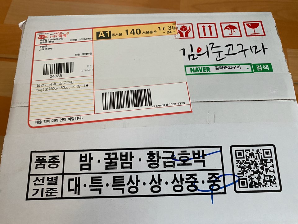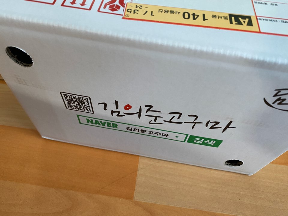 이름이 꿀 고구마였다가 황금호박 고구마였다가... 네이버 쇼핑에서 구매했는데 네이버 쇼핑에는 꿀 고구마로 되어있고요! 박스 품종 표시에는 황금호박에 체크가 되어있네요 ㅎㅎ