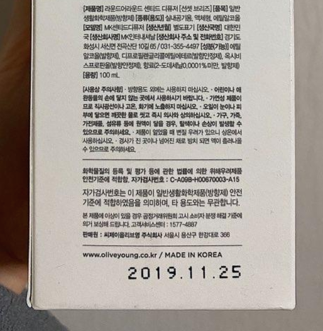 생산년월도 아래쪽에 뙇 박혀있습니다. 2019년 11월 25일.