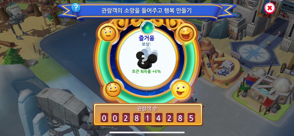 토큰을 가져 올 확률은, 아까 말씀드렸다시피 어린이 손님들의 행복수치에 비례한답니당.