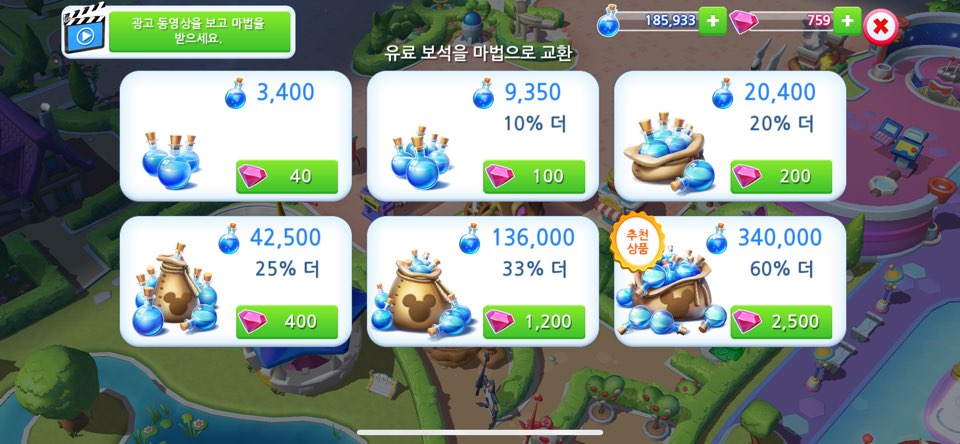 알뜰살뜰 모은 마법으로 캐릭터를 맞이하거나 업그레이드 시키고, 건물 개조 등을 할 수 있습니다~!