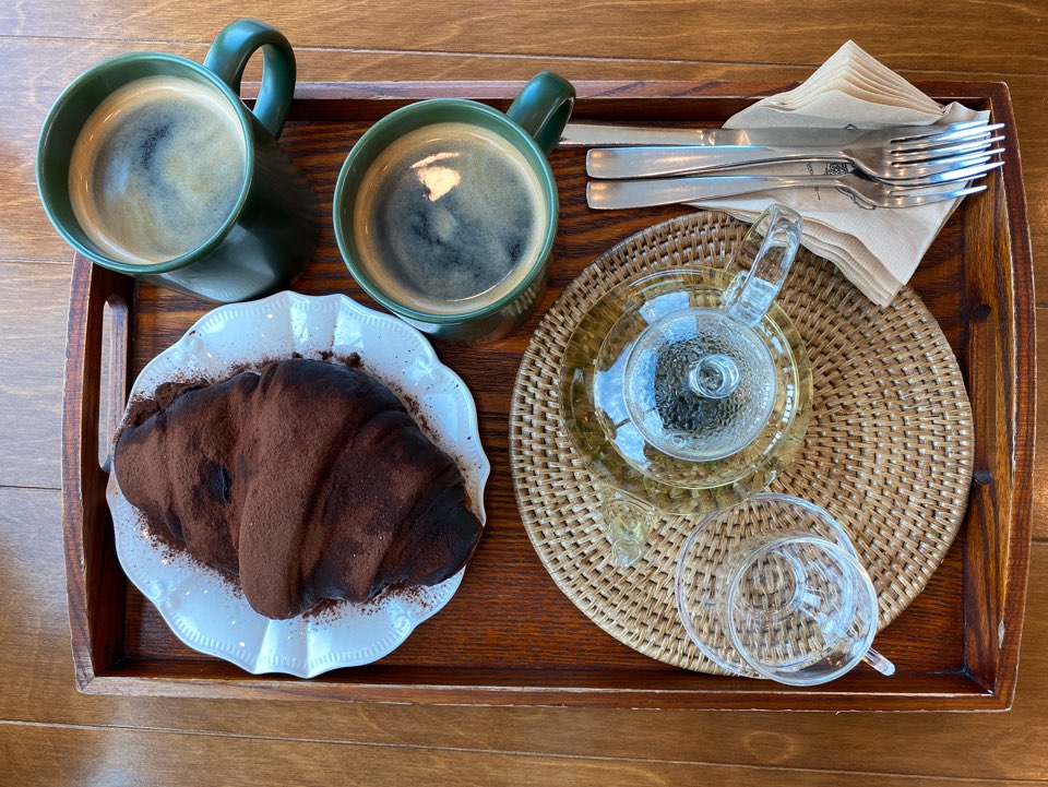 아메리카노 2잔과 로즈 그린티, 초코 크라상을 주문했어요.