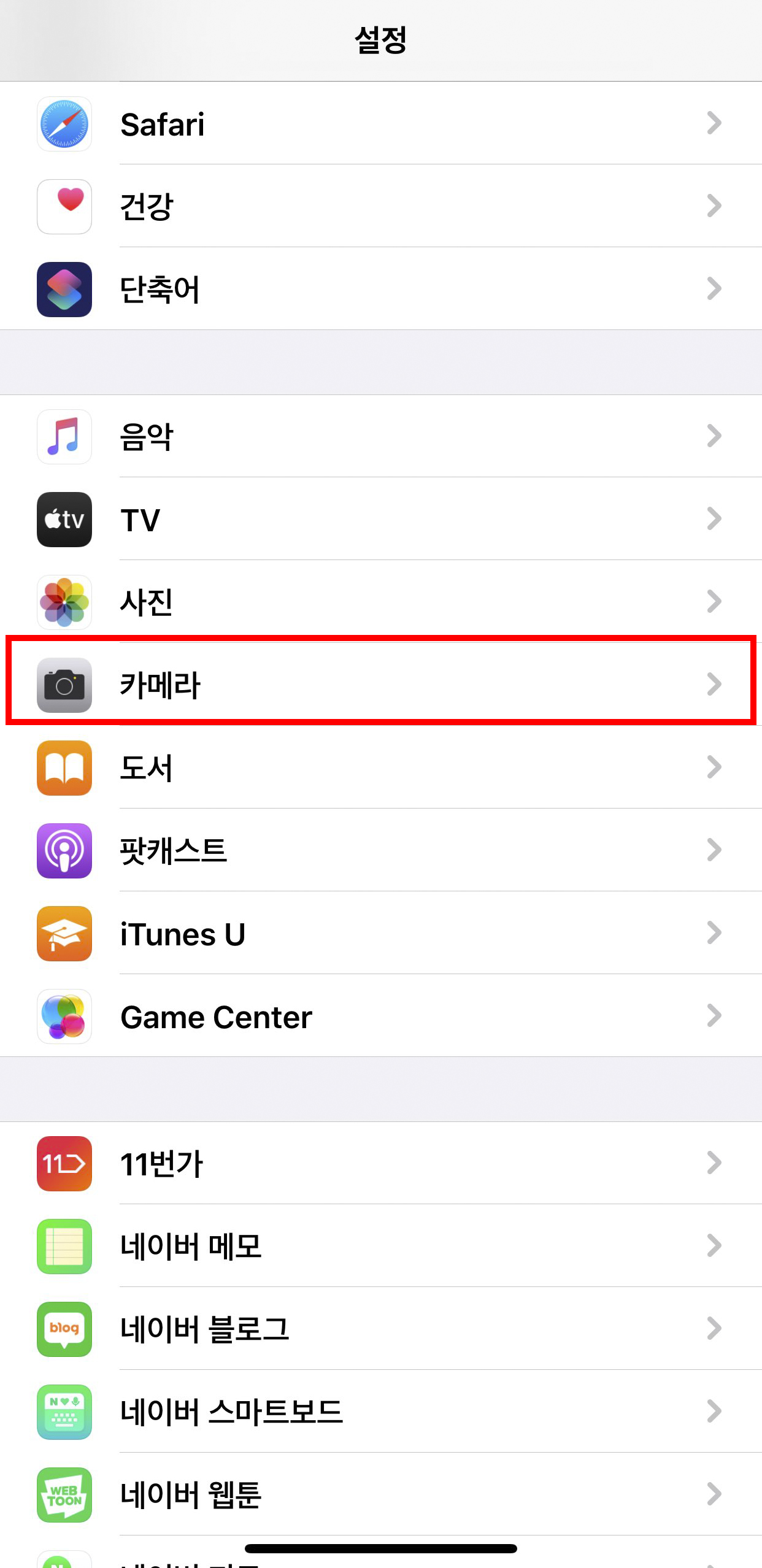 3. 다시 이전으로 나가 [카메라] 탭을 들어갑니다.