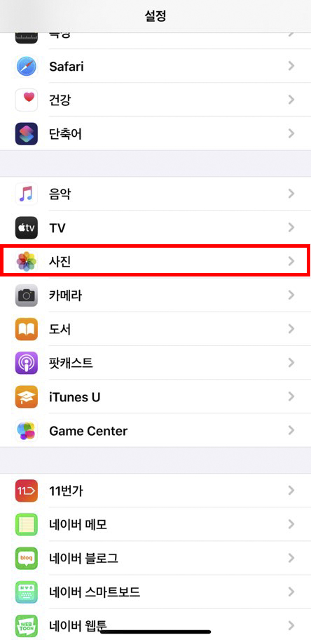 1. 아이폰 [설정] -> [사진]으로 들어갑니다.