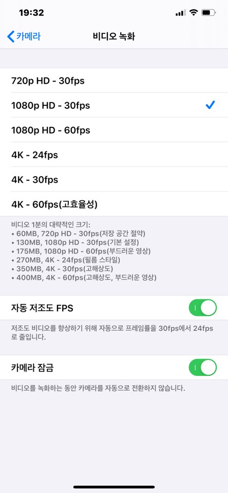 저는 비디오 녹화 상태가 현재는 1080에 30fps이지만 원래는 4K-30fps였는데